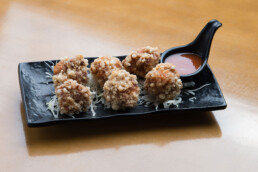 Filé mignon empanado, super crocante e com tempero da casa. Acompanha molho teriyaki.