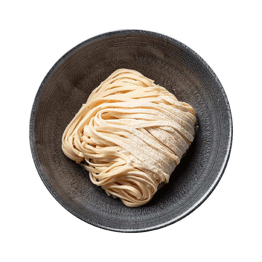 Macarrão fino, chicken katsu, menma, cebolinha, nirá, folha de nori, moyashi, kikurage (cogumelo), hanjuko tamago (ovo), caldo à base de sal.